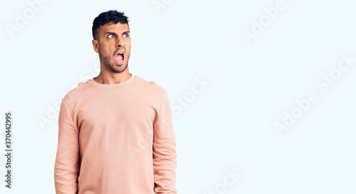 Young hispanic man wearing casual clothes angry and mad screaming frustrated and furious, shouting with anger. rage and aggressive concept.