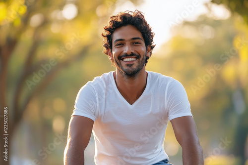 young Indian man riding cycle at park