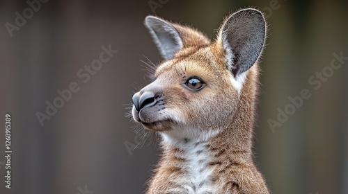 Young kangaroo portrait, zoo enclosure, blurred background, wildlife photography