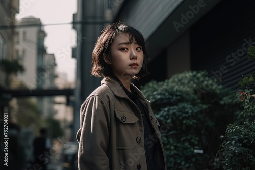 woman, city, street, cinematic, portrait, jacket, korean, young, adorable, urban, life, fashion, face, style, trendy, fashionable, beauty, short, hair, model, 1, clothing, brunette