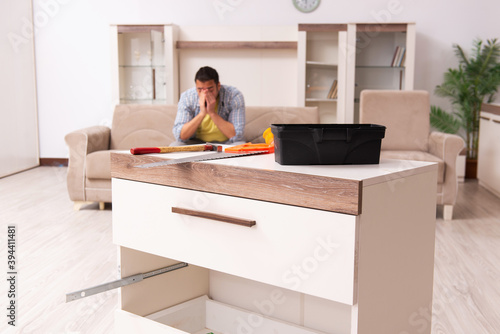 Young male carpenter repairing furniture at home