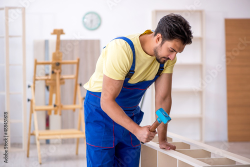 Young male carpenter working at home