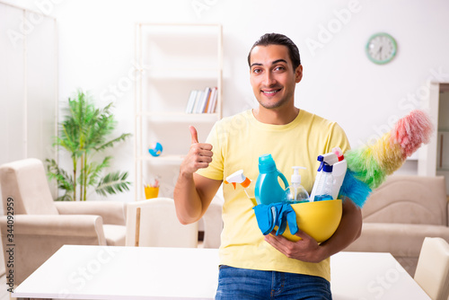Young male contractor doing housework at home