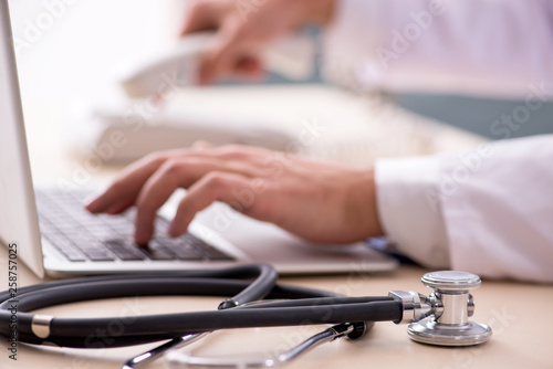 Young male doctor in telemedicine concept