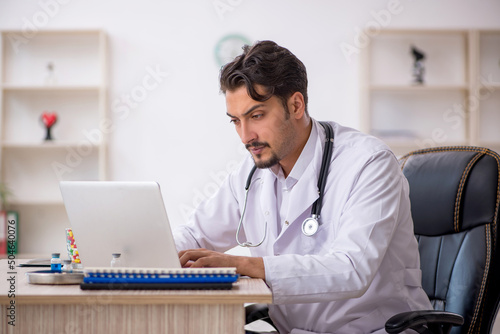 Young male doctor working in the clinic