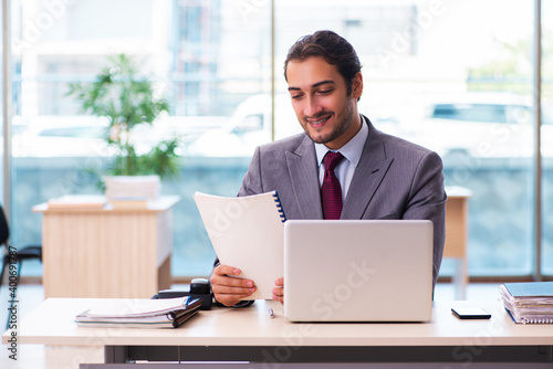 Young male employee working in the office