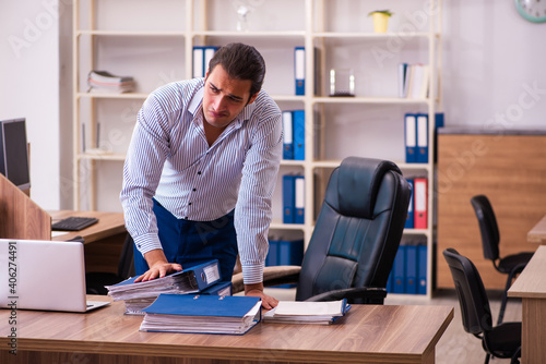 Young male employee working in the office