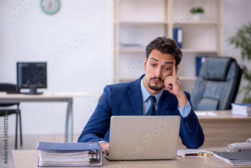 Young male employee working in the office
