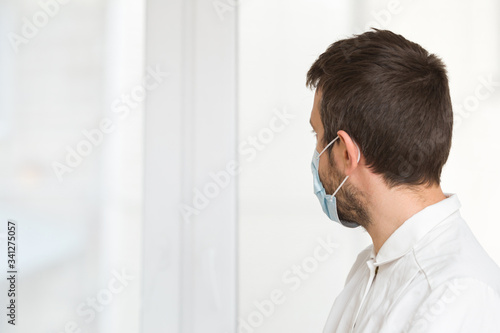 mask, virus, respirator, isolation, quarantine, face, man, epidemic, infection, pandemic, medicals, doctor, breathing, corona, air, flu, antibacterial, disposable, health care, flu, staff, medicine, mouth, protect, nose, filter, outbreak, people, concept, pneumonia, pollution, respiratory, safety, breath, health, clinical, surgical, nurse, hygiene, looking, window, surgeon, male, physician, hygienic, dirty, practitioner