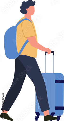 aerodrome, travel, tour tourism, holiday maker, baggage, suitcase, backpack, walking, passenger, trip, journey, vacation, arrival, departure, transportation, airline, flight, terminal, gate, boarding, holiday, adventure, destination, traveler, man, guy, boy, male, young, adult, person, people, character, illustration, vector, flat, design, isolated, white, background, side, view, business, briefcase, international, carry, essential, wanderlust