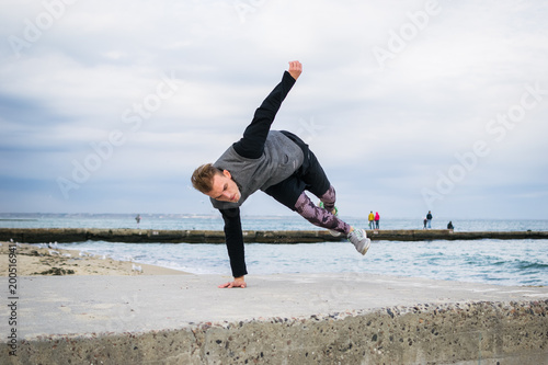 acrobatic, action, active, activity, adrenalin, adult, athlete, athletic, autumn, beach, breakdance, breakdancer, cloudy, danger, energy, exercise, extreme, fitness, flip, free, gymnastics, jump, jumper, lifestyle, male, man, motion, obstacle, run, runner, sand, sea, skill, slow motion, somersault, sport, sunset, trick, crumbled, water, young, youth