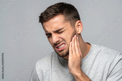 man, pain, discomfort, expression, grey, portrait, emotional, suffering, jaw, teeth, hand, frown, young, bruised, health, clinic, mouth, care, sensitivity, face, anxiety, struggle, reaction, feeling, neutral, stress, unpleasant, sorrowful, anger, stressful, painfully, ache, worry, concern, problem, trouble, treatment, medicals, urgent, painful, chronic, nervous, issue, symptom, emergency