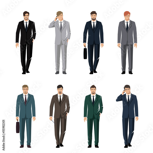 set, collection, human, man, young, professional, clothes, active, isolated, smile, cheerful, successful, company, business, affair, dress, costume, classical, elegant, phone, portfolio, boss, leading, lawyer, positive, model, adviser, corporate, vector, curve, design, decor, illustration, picture, template, sample, concept, web, presentation, print, style, hair dress, point, rule, flat