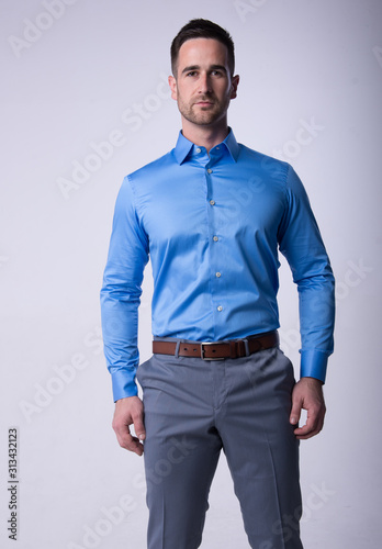 young, isolated, photogenic, casual attire, portrait, white, guy, shirt, fashion, model, standing, business, person, happy, people, businessman, jean, smiling, smile, studio, man, looking, 1, confident, boy