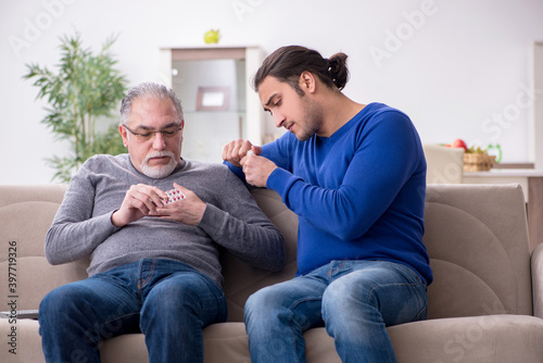 man, family, father, son, sitting, sofa, ill, sick, disease, disease, disease, pill, tablet, capsule, vitamin, painkiller, drug, medicare, caring, looking, after, health, prescription, bottle, container, opening, father, 2, man, home, house, grandfather, senior, together, grandson, eltern, grandparent, love, old, aged, human relationships, retired, parenthood, retirement, elder, generation, people, male, mature, grandchild