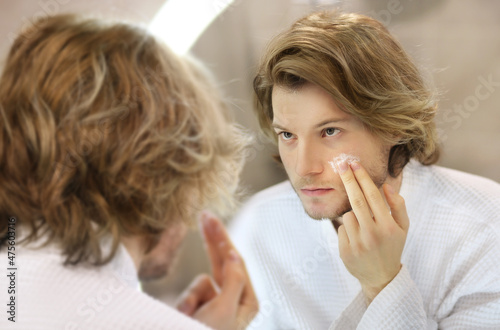 acne, adult, applying, bathroom, beautiful, blond, care, cleansing, correction, cosmetology, cream, derma, evening, hair, photogenic, health, healthy, home, indoor, lifestyle, male, man, medicals, miracle, mirror, moisturise, morning, peeling, people, problem, procedure, rejuvenation, routine, skin, skincare, teenage, treatment, young