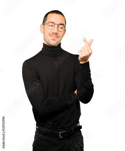 Young man making a gesture of worried about his economy