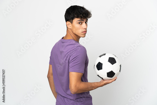 athlete, athletic, background, ball, blank, caucasian, competition, football, game, guy, photogenic, hispanic, isolated, leisure, male, man, people, person, player, playing, professional, slim, sport, activewear, studio, training, white, young, man, soccer
