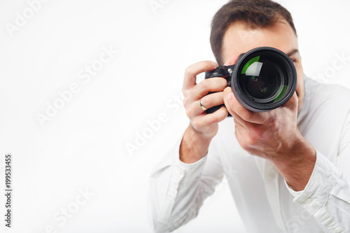 isolated, portrait, male, man, studio, hobby, photographer, professional, camera, casual attire, adult, lifestyle, person, young, photo, paparazzi, picture, photo, photograph, holding, digital, people, model, hand, work, leisure, happy, lens, modern, taking, cheerful, attractive, art, concept, beautiful, occupation, journalist, photogenic, shoot, successful, shooting, making, equipment, creative, sharpened, job