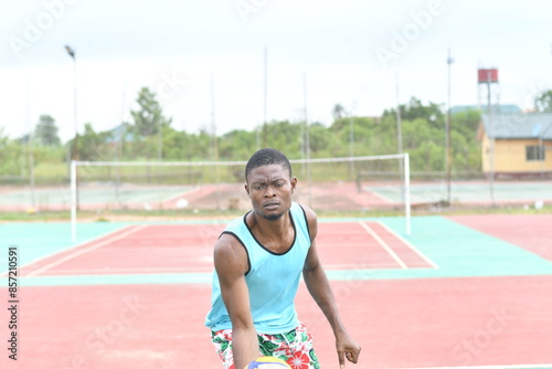 sport, person, man, adult, competition, playing, male, fun, athlete, exercise, fit, game, ball, volleyball, horizontal, young, activity, lifestyle, hobby, wellness, practice, pass, player, youth, health, volley, action, competitive, sportsman, training, professional, african, people, black, leisure, hand, nigeria, africa, play, court