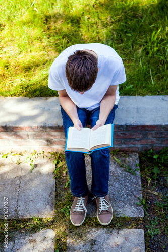 man, reader, teenage, teenage, read, book, reading, male, summer, day, youth, caucasian, young, textbook, to sit, hold, tome, novel, rest, pleasure, study, education, story, lad, interest, youthful, guy, casual attire, student, solitude, street, city, sidewalk, calm, opened, page, exam, learn, cognition, 1, park, human, sunlight, grass, meadow
