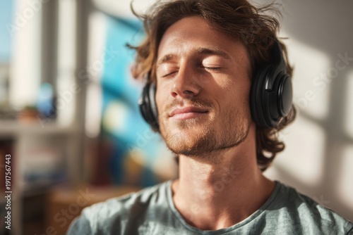 Young man relaxing with headphones at home