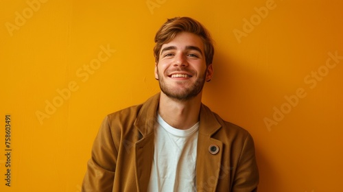 Young Man Smiling Against a Yellow Wall