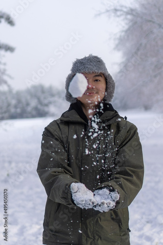Young man standing on snow covered ground