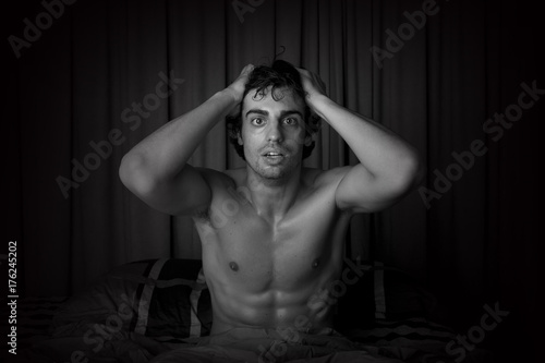 young, portrait, woman, naked, body, black, muscular, beauty, model, fashion, muscle, dark, torso, shirtless, person, photogenic, face, guy, sad, human, people, white, fitness, man, studio