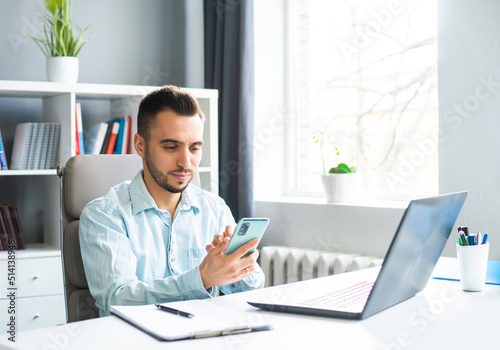 man, successful, home, work, office, freelance, freelancer, remote, distant, workplace, business, indoor, male, guy, photogenic, caucasian, young, happy, phone, mobile, phone, smartphone, contraption, device, men at work, employee, entrepreneur, creative, working, student, businessman, education, study, table, professional, white, cyberspace, casual attire, lifestyle, job, computer, laptop, room, notebook, day, network, daylight, career, concentrated