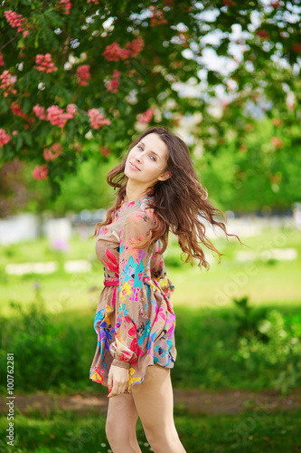 adult, beautiful, business, chestnut, dancing, europa, european, france, french, garden, girl, paris, parisian, park, people, pink, relaxation, slim, spring, springtime, summer, summer, tree, white, woman, young