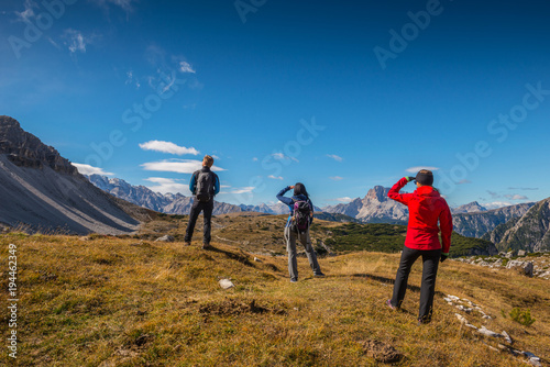 young people in italien dolomites, loving nature and climbing, beautiful view scenery tre cime di lavaredo