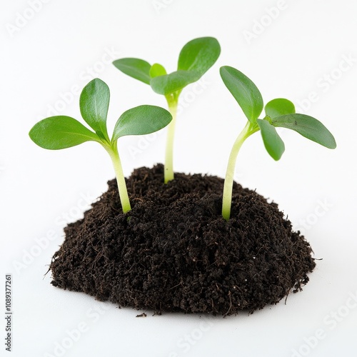 young plants growing from rich soil, symbolizing new beginnings and growth