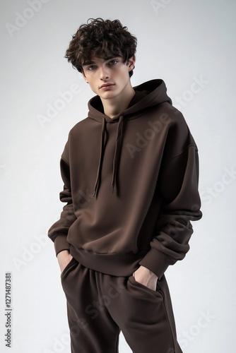 photogenic, person, hoodie, boy, guy, model, shirt, people, casual attire, man, face, 1, looking, standing, hair, studio, cool, style, posing, brown, fashion, beauty