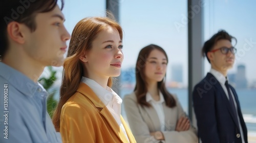 Young Professionals Standing Confidently in a Modern Office Environment