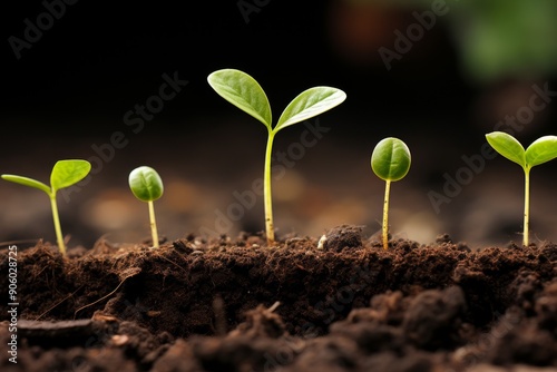 Young seedlings sprouting from soil in various stages of growth.