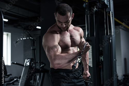 sport, activity, person, people, caucasian, man, power, strong, physical, lifestyle, sportive, shirtless, indoor, gym, exercise, sportsman, alone, train, athlete, concentrated, bicep, bodybuilder, physical exercise, muscle, activewear, young adult, sports equipment, look at