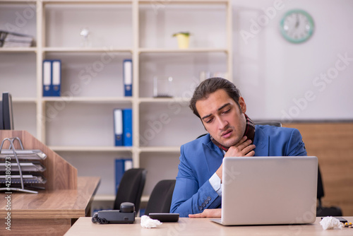 Young sick businessman employee suffering at workplace