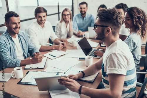 Young Smiling Business People on Meeting in Office