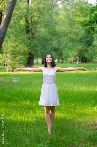 woman, summer, meadow, picking, flower, basket, dress, standing, 1, nature, young, person, white, long hair, brunette, brown hair, grass, tree, tree, outdoors, beautiful, beauty, pretty, smile, smiling, alone, lonely, solitude, lifestyle, relax, happiness, happy, joy, park, people, spring, field, forest, wood, relaxing, recreation, rest, resting, girl