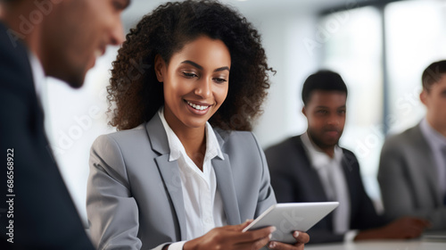 woman, tablet, office, professional, businesswoman, female, business, work, young, happy, technology, looking, adult, portrait, digital, person, job, smile, entrepreneur, cyberspace, confident, manager, cheerful, corporate, african, communication, diversity, hold, indoor, startup, using, ceo, american, colleague, team, meeting, discussion, collaboration, device, smiling, teamwork, environment, co-worker, consultation, planning, executive, presentation, brainstorming, engagement