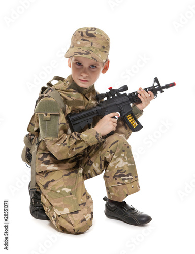 soldier, boy, rifle, armed, army, force, children, camouflage, military, little, clothing, 1, patriotism, uniform, helmet, caucasian, commando, people, smile, imagination, july, weapon, studio, cute, gun, fourth, afghanistan, guard, danger, fighting, terrorism, sharpshooter, conflict, irak, small, childhood, isolated, national, white, happiness, war, halloween, warrior, background, costume, american, us
