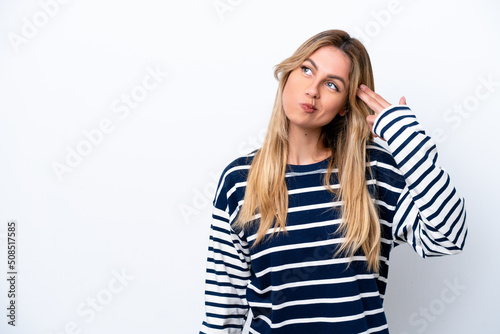 Young Uruguayan woman isolated on white background with problems making suicide gesture