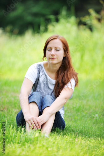 adult, beautiful, beauty, camera, casual attire, caucasian, cheerful, clothing, coloured, cute, down, face, fashion, female, girl, grass, green, hair, happiness, head, human, lawn, little, long, sitting, modern, nature, 1, only, outdoors, park, people, person, portrait, relaxation, serene, smiling, spring, student, summer, sun, woman, young