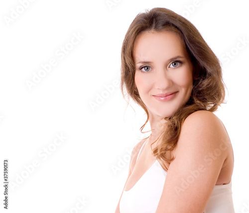 activity, adult, attractive, beautiful, beauty, candid, carefree, casual attire, caucasian, cheerful, complexion, confidence, contemporary, content, cosmetic, cute, expression, face, female, femininity, freshness, hair, happiness, isolated, leisure, 1, only, portrait, posing, sensuality, shot, shoulder, smile, smiling, studio, style, teeth, white, woman, woman, young, youth
