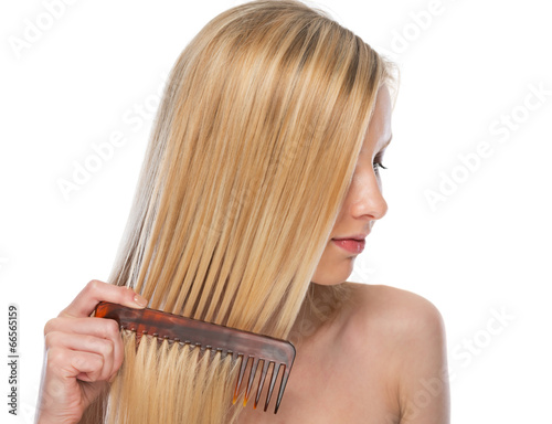 woman, female, girl, beauty, portrait, beautiful, combing, comb, hair, care, hair care, young, long hair, teenage, teenage, teenage, isolated, white, white background, anonymous, model, fresh, caucasian, blond
