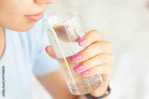beverage, body, clear, close, up, diet, drink, drinking, face, fit, food, fresh, freshness, girl, glasses, hand, happy, health, healthy, holding, liquid, natural, nature, 1, person, pure, refreshing, smile, transparent, water, white, background, woman, young