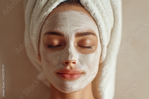 Young woman enjoying a clay facial mask at a serene spa, embracing relaxation and self-care during her wellness journey