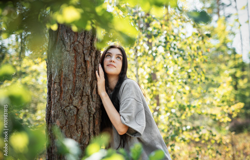 woman, tree, forest, nature, peace, sunlight, greenery, outdoors, calmness, leisure, natural, environment, young, adult, looking, appreciation, calm, beauty, serene, landscape, filtering, foliage, moment, connection, wildlife, exploration, health, mental, wellness, mindfulness, relaxation, solitude, admiration, growth, refreshing, childhood, inspiration, adventure, summer, joy, wonder, earth, tree, dream, harmony, fresh, air, spirit