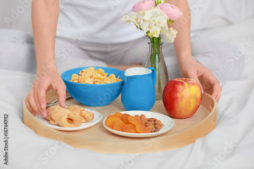 almond, apple, background, bed, bedding, bowl, breakfast, closeup, cornflake, cookery, delicious, dessert, eating, female, flower, food, fresh, fruit, gastronomy, girl, hand, having, health, healthy, home, hotel, jug, meal, milk, morning, natural, nutrient, nourishment, organic, pajama, person, plate, prepared, snack, sweet, tasty, tray, treat, vase, woman, wooden, young, deliciously